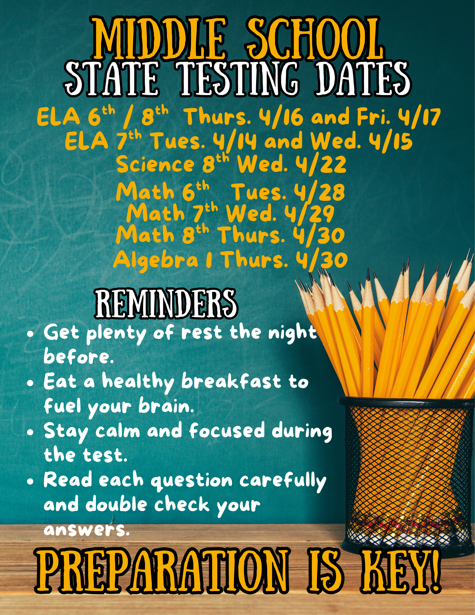 This week, our fourth graders kicked off state testing with an outstanding effort on their English language arts assessment. Next week, students in grades 5 through 8 and grade 10 will also take the ELA assessment. Our students are well prepared, and we know they will do an excellent job demonstrating what they have learned throughout the year.