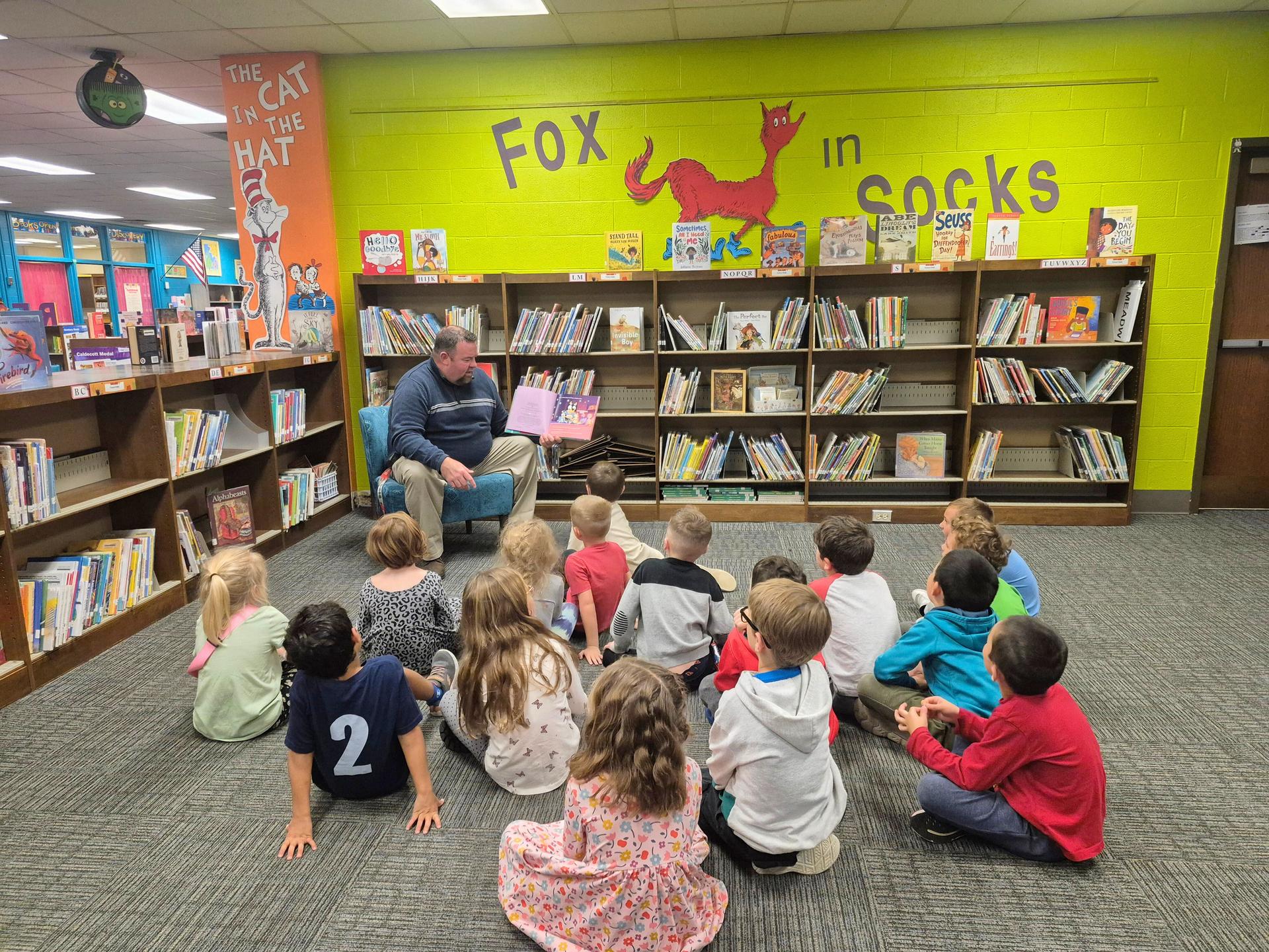 First graders have been diving into the magical world of fiction in the library, learning how different genres help us understand the stories we love. This past week, we focused on folktales and fairytales, stories full of wonder, adventure, and just a little bit of “once upon a time.” We also had a fun surprise up our sleeve: a special guest reader! Our principal, Mr. Melvin, stopped by to share a fairytale from a very unique time and place, the 80s! Students were all smiles as they listened to him read a Bluey Fairytale written by Joe Brumm. It was such a treat to see their excitement and hear their thoughtful discussions throughout the story. A big thank you to Mr. Melvin for joining us in the library and helping make our fairytale week extra magical. |