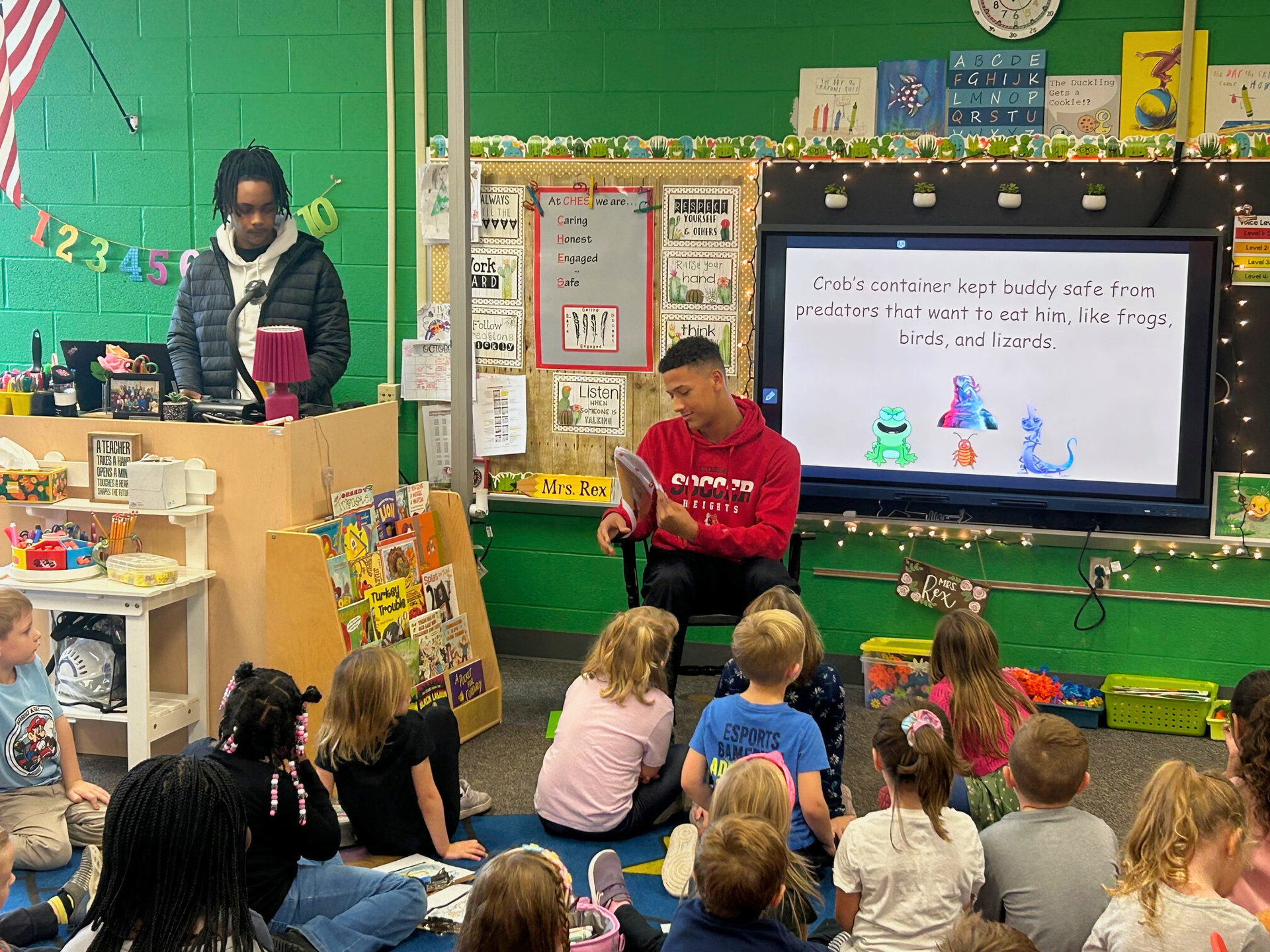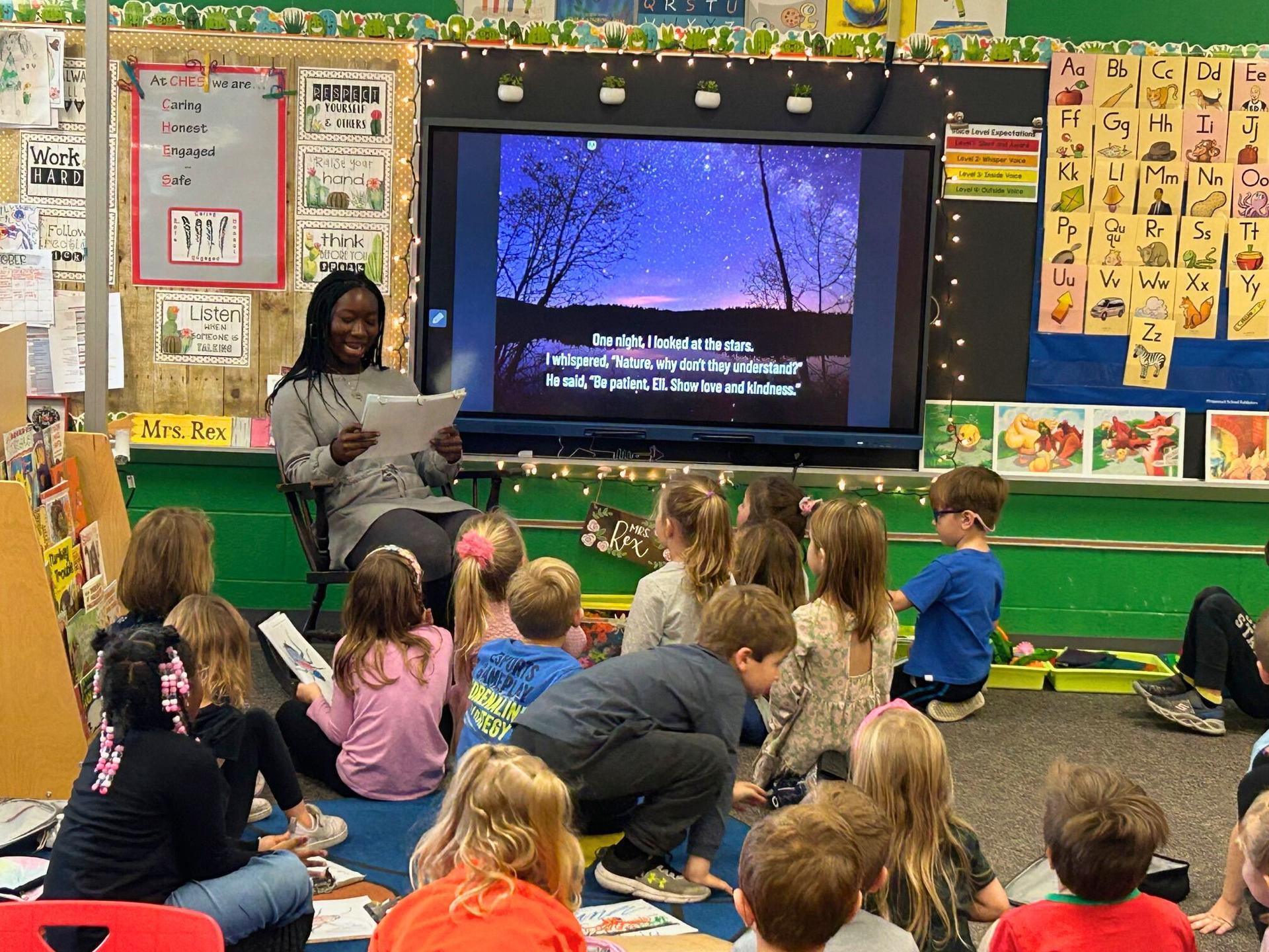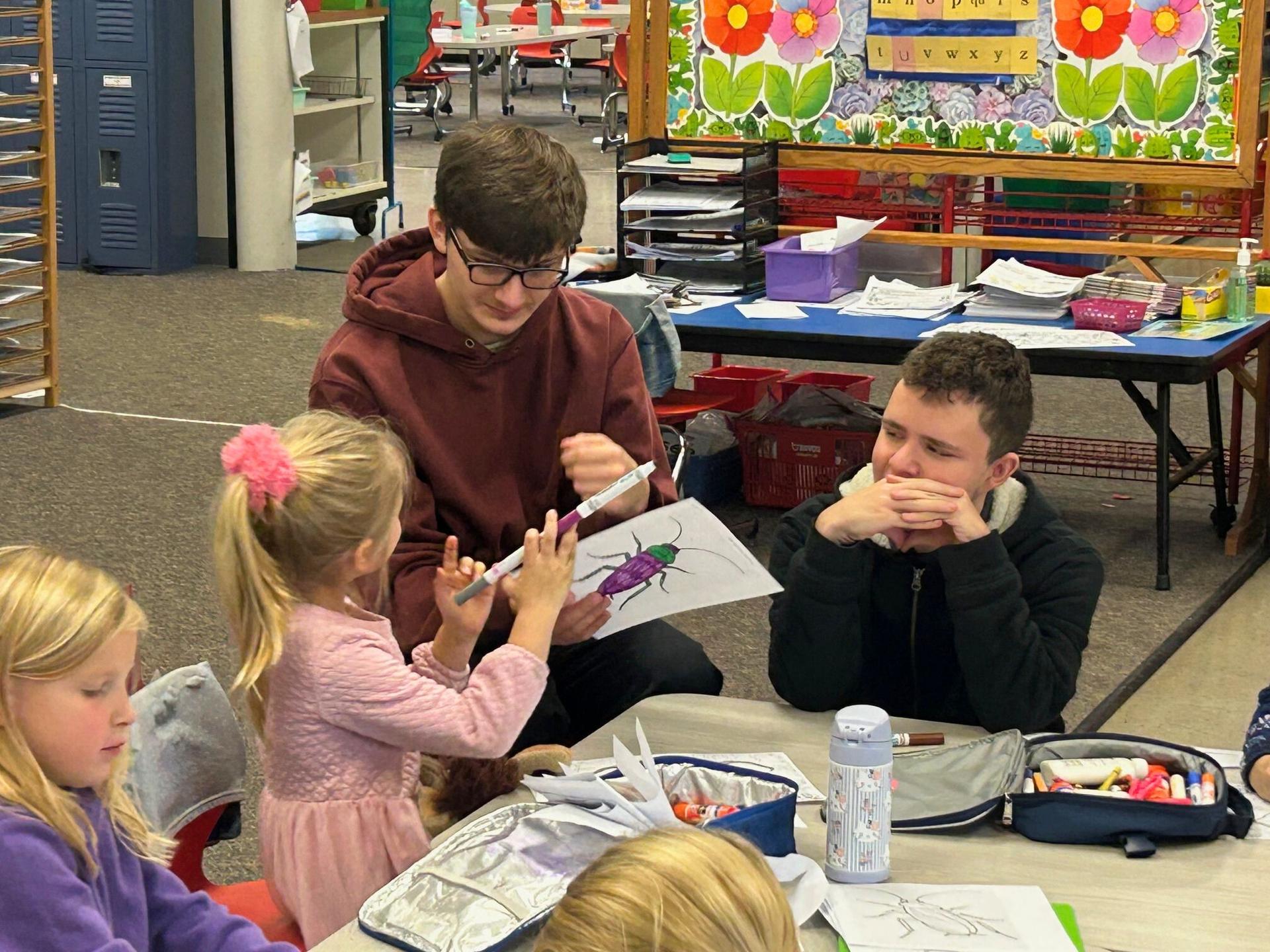 High School Environmental Science Class Reads to the Kindergarteners |